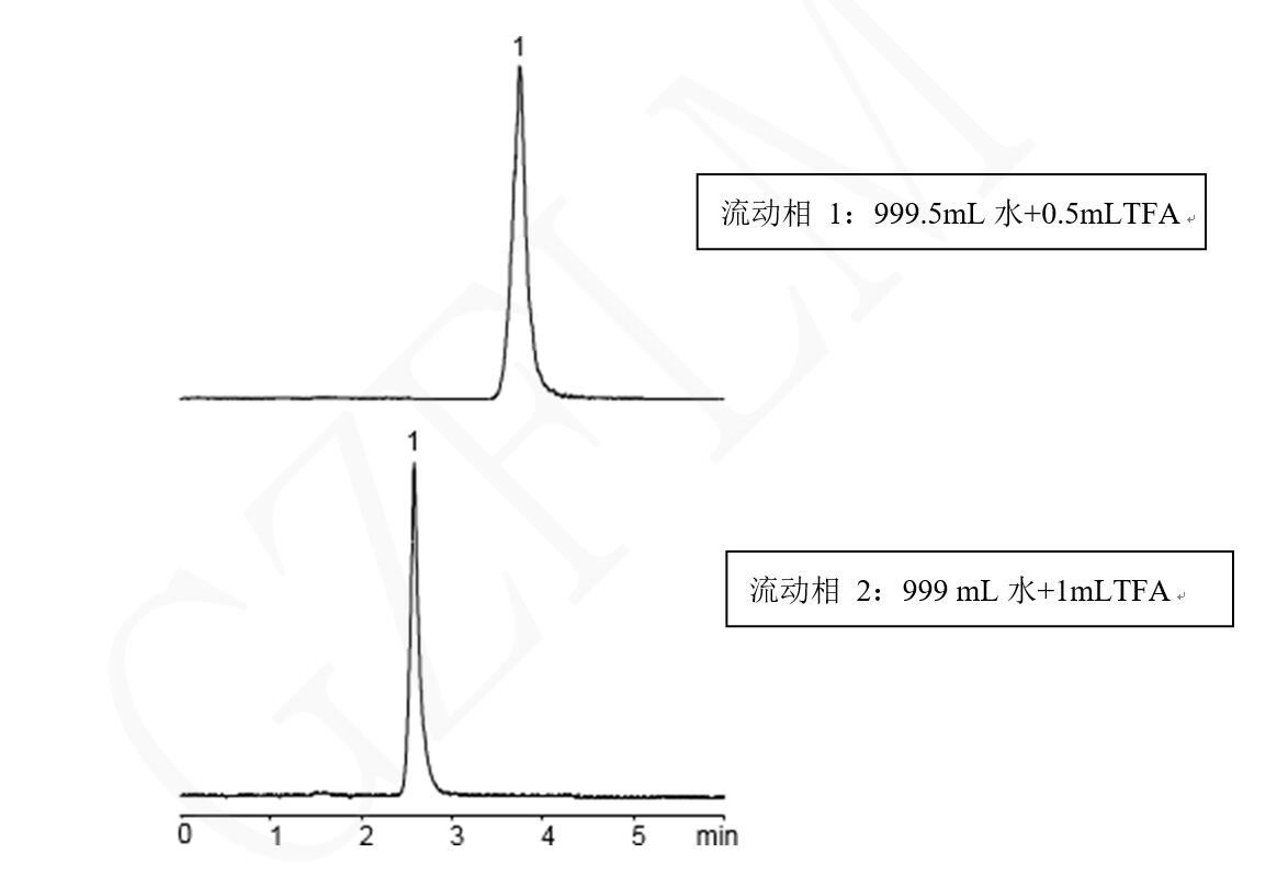 說明:因條件所限,在 ELSD 下按上述條件對肼進(jìn)行分析。如果是 LC-MS 檢測器,TFA 可以改為 0.1%甲酸,或者用 10mM 的甲酸銨,并可適當(dāng)添加乙腈