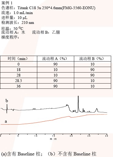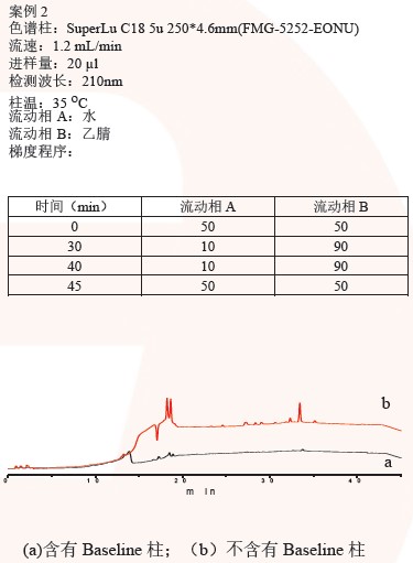色譜柱可對流動相或系統(tǒng)流路內(nèi)的強(qiáng)保留污染組分起到富集作用,在有機(jī)相比例隨梯度程序變化的過程中而被沖洗出來。
