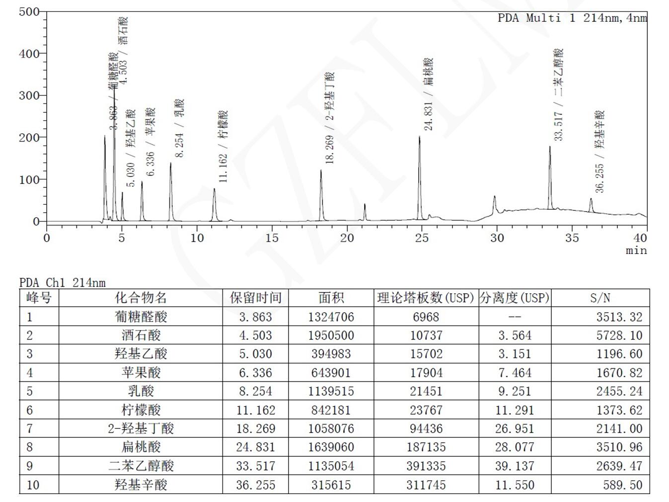 菲羅門對《化妝品安全技術規范》中 10 種α-羥基酸的檢測