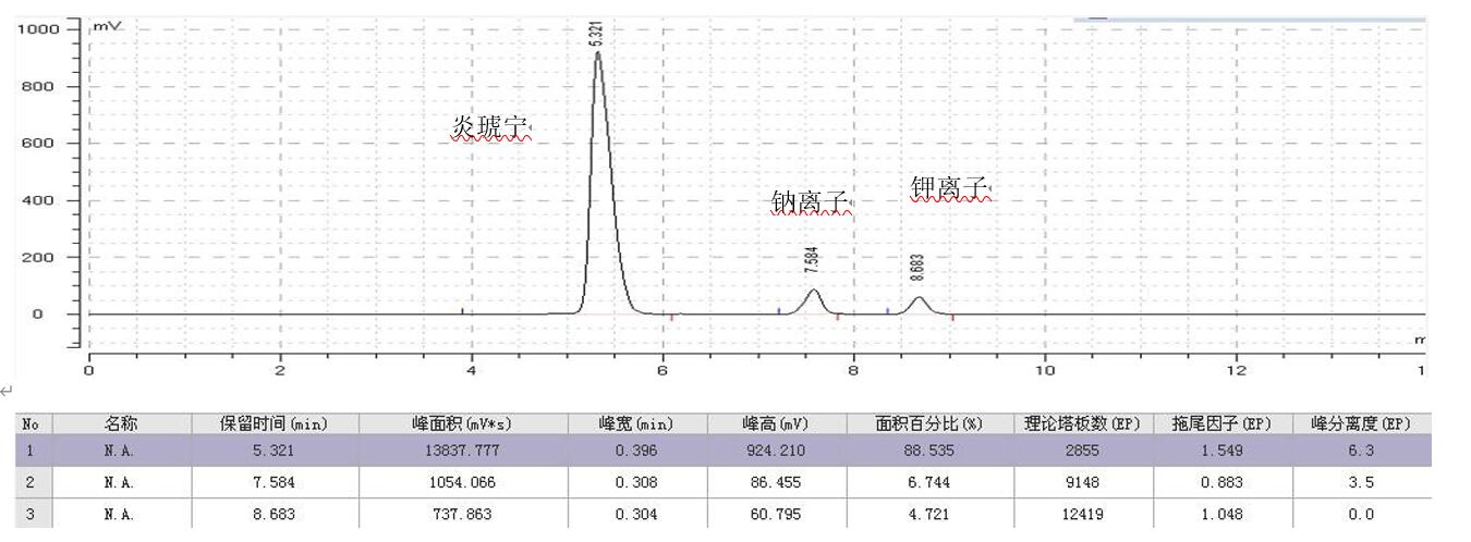 250*4.6mm)建立完成了炎琥寧中鈉鉀離子的含量檢測(cè)方法。為產(chǎn)品質(zhì)量提供保證。