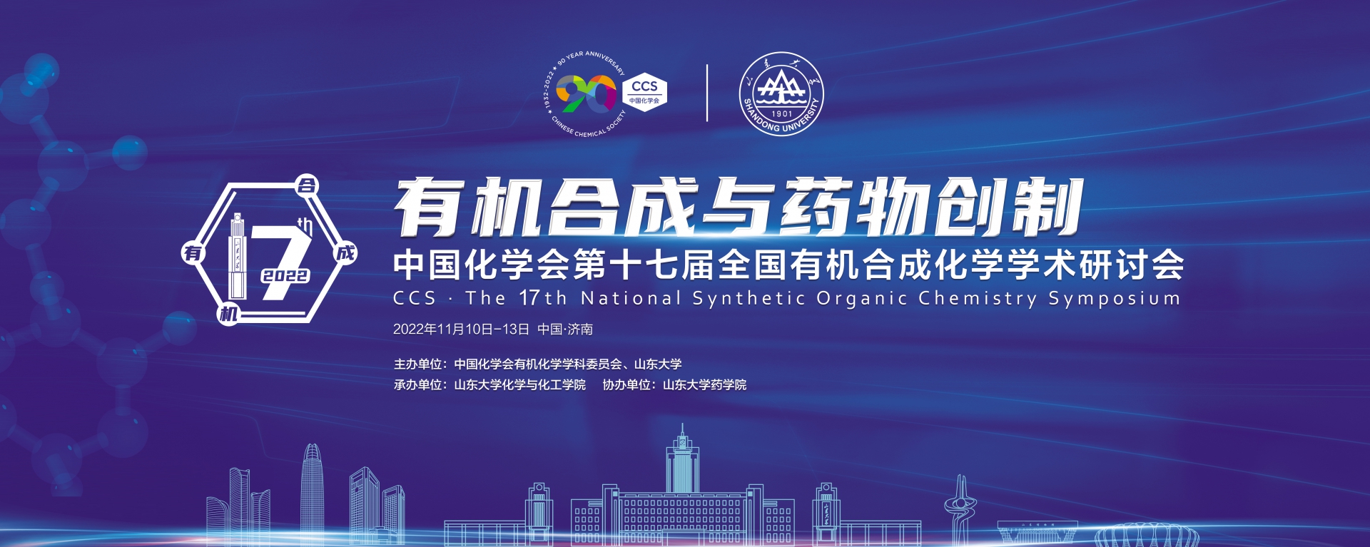 中國化學會第十七屆全國有機合成化學學術研討會定于2022年11月10至13日在山東省濟南市舉行。本次會議由中國化學會有機化學學科委員會、山東大學共同主辦,山東大學化學與化工學院承辦,山東大學藥學院協辦。