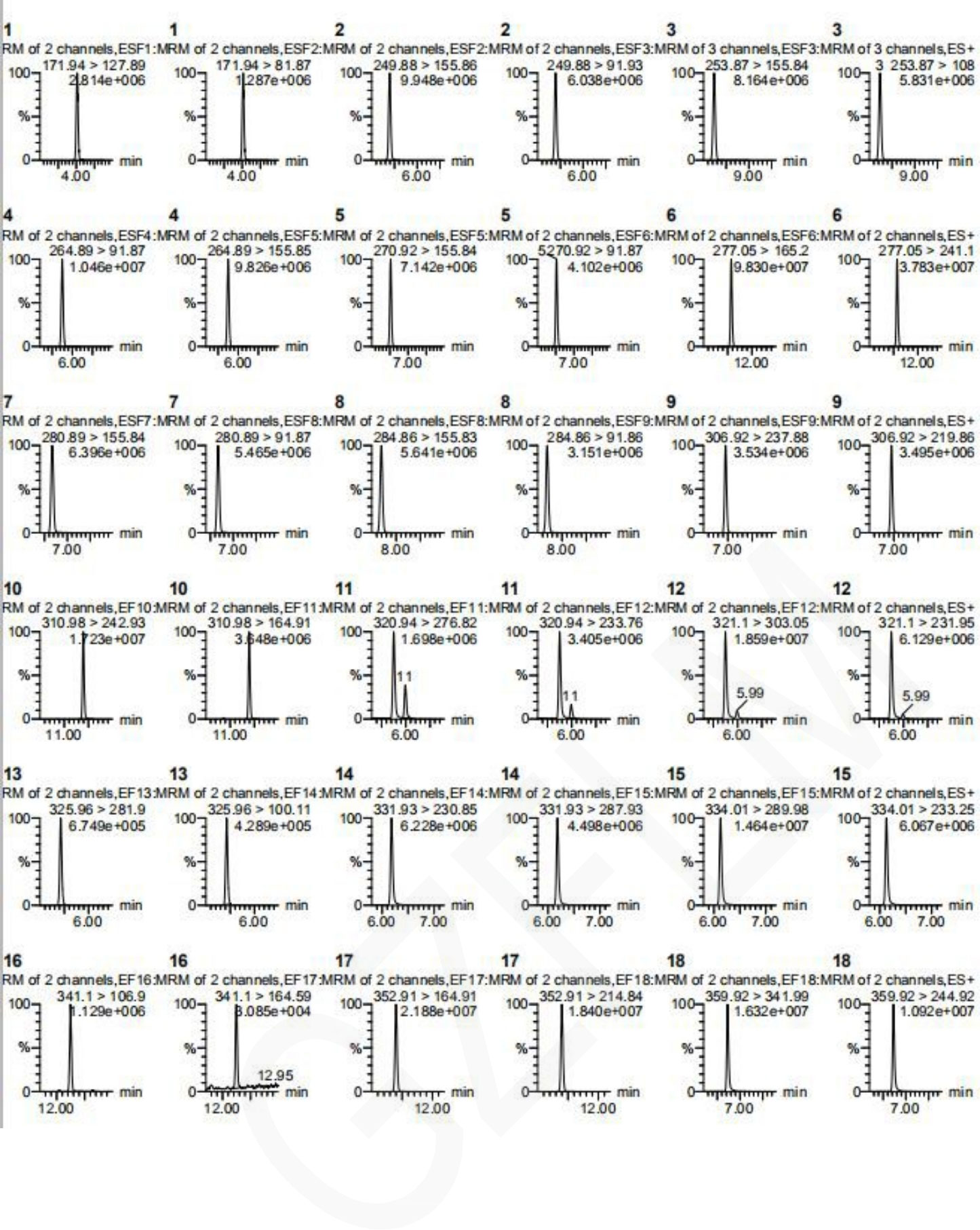 獸藥殘留中 36 種抗生素的檢測(cè)