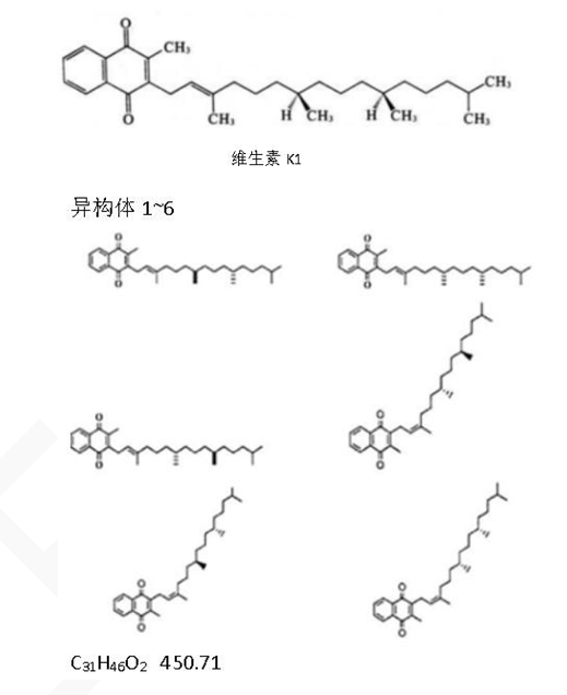 維生素K1,又名植物甲萘醌、葉綠基甲萘醌、葉綠醌,化學名稱為2-甲基-3-植醇基-1,4-萘醌,是一種多環芳香酮,也是一種脂溶性維生素。它對于肝臟合成凝血因子Ⅱ、Ⅶ、Ⅸ、Ⅹ至關重要,在臨床上主要用于防治因維生素K缺乏所致的出血癥,如新生兒出血、長期口服抗生素所致的出血癥等。關于維生素K1及其異構體的手性拆分,以下進行詳細分析:
