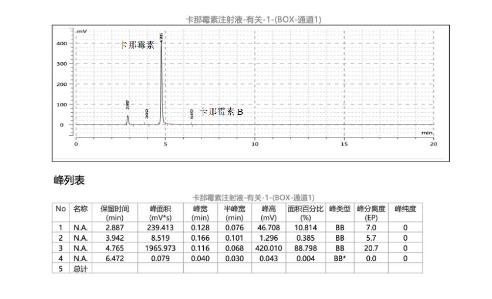 有關(guān)物質(zhì)(卡那霉素B 的含量)
