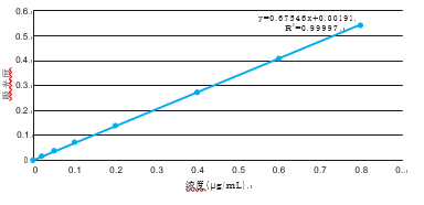 色,作為參比。以六價(jià)鉻濃度(1 μg/mL)作為X軸,以吸光度作為Y軸繪制標(biāo)準(zhǔn)曲線。(圖2)