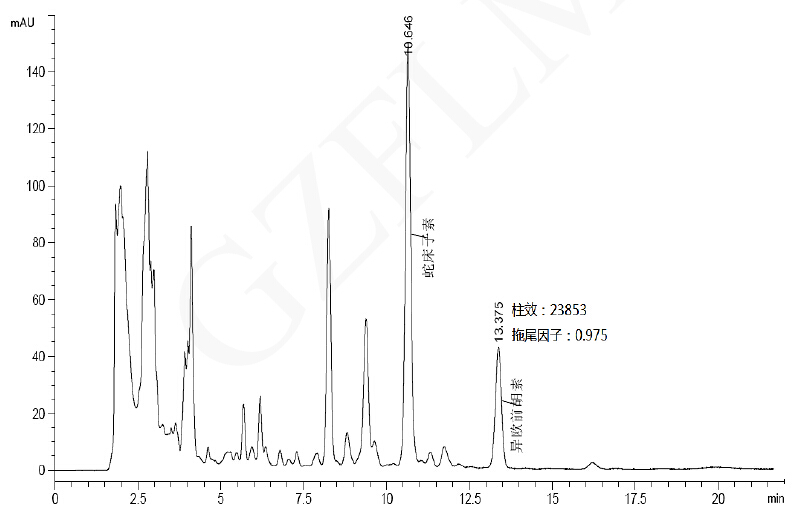 注:藥典規(guī)定理論板數(shù)按異歐前胡素峰計算應不低于 20000.