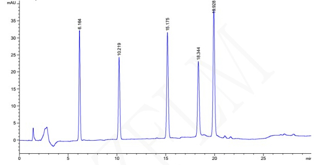 色譜柱:Titank F5 5μm 250×4.6mm(貨號(hào):FMG-5565-EONU) 檢測波長:227 nm