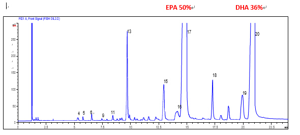 實(shí)驗(yàn)證明采用菲羅門(mén)的 FB-FameWax 氣相色譜柱能夠很好的分離魚(yú)油中相應(yīng)目標(biāo)成份。